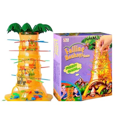 W zestawie znajduje się: 1 palma wraz z koroną drzewa 30 małpek 30 patyczków kostka Instrukcja Wysokość drzewa z podstawą 38,5 cm z palmą 40 cm. Liczba graczy: 2-4. Małpki są kolorowe Wymiary opakowania : 25 x 25 x 8 cm