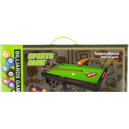 Rozwija kreatywność dziecka, pozwala na spędzenie wolnego czasu. Praktyczne wydanie stołu bilardowego idealnie nadającego się dla mniejszych graczy. Bilard staje się sportem coraz bardziej popularny jako sposób na spędzenie wolnego czasu. Prezentowany stół jest idealnie zeskalowany z profesjonalnych stołów pełnowymiarowych. Zawartość zestawu: stół, 11 bil, 2 x kijki, trójkąt, 6 nóżek do stołu. Całość wykonana z plastiku i zamszu.