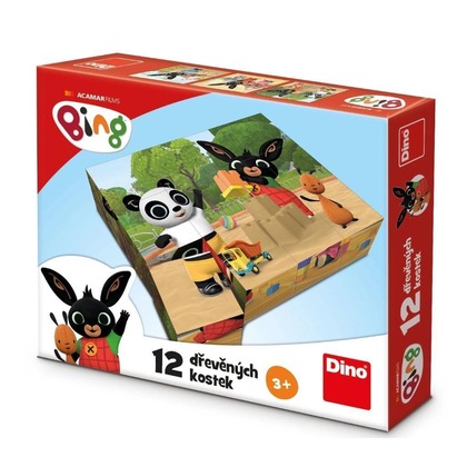 Klocki drewniane z serii Królik Bing - 6 obrazków do ułożenia. Zestaw zawiera 12 drewnianych klocków, po ułożeniu obrazek ma wielkość ok. 20 x 17 cm. Klocki dla dzieci 3+ Wymiary opakowania 21,5 x 17,5 x 4 cm. Wyprodukowane w Czechach. Oryginalna układanka na licencji.