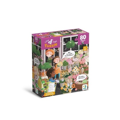 Te rozwijające puzzle składające się z 80 elementów łączą układanie z wesołą grą na spostrzegawczość: po ułożeniu obrazka dziecko ma za zadanie znaleźć ukryte obiekty według podpowiedzi na specjalnych kartach.