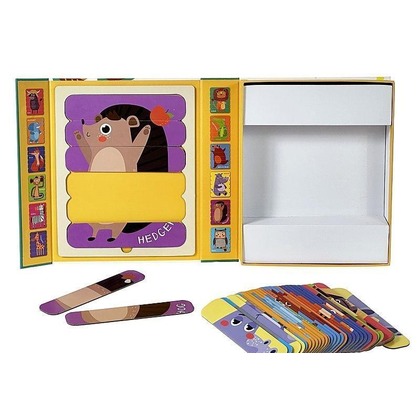 układanka puzzle, w kształcie pasków, zwierzęta; 25,5x20,5x5,5cm, Box