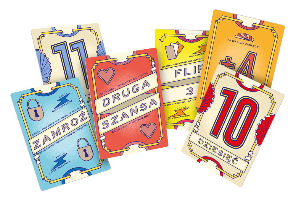 Dobierz kartę z numerem, aby zdobyć odpowiadającą mu liczbę punktów. Teraz kolejna! A może jeszcze jedna? Im więcej kart dobierzesz, tym więcej punktów wpadnie na Twoje konto. Ale uważaj! Jeśli któryś numer się powtórzy, odpadniesz i stracisz wszystko, co udało Ci się zebrać w tej rundzie! Flip 7 to niezwykle prosta gra karciana oparta na kuszeniu losu. W każdej turze decydujemy, czy podejmujemy ryzyko, próbując powiększyć nasz dorobek punktowy, czy też wolimy spasować i zachować to, co już udało nam się zebrać. Zwycięzcę wyłonimy, gdy ktoś przekroczy 200 punktów, więc czeka nas emocjonujący wyścig pełen niespodziewanych zwrotów akcji! Na czym to polega? Rozgrywka toczy się na przestrzeni rund do momentu, aż któryś z graczy zdobędzie 200 punktów. Do zabawy wykorzystujemy specjalną talię kart z liczbami. Im większa liczba na karcie, tym więcej egzemplarzy tej karty znajduje się w talii. Oprócz tego kryją się tam specjalne karty modyfikatorów, które powiększają nasz dorobek punktowy, a także 3 rodzaje kart akcji, które mogą uratować nas w kryzysowej sytuacji, zmuszą jednego z graczy do dobrania aż 3 kart na raz albo pozwolą natychmiastowo zamrozić czyjąś rundę. Podczas pojedynczej rundy gracze zbierają karty, chcąc zdobyć za nie jak najwięcej punktów. Za każdym razem decydujemy, czy chcemy dobrać kolejną kartę, czy spasować na resztę rundy i dopisać aktualny wynik do bezpiecznego bilansu punktowego. Jeśli zdecydujemy się na dobieranie i trafimy na kartę, którą już mamy, odpadamy z rundy nie zdobywając żadnych punktów. Jeśli po zakończeniu rundy ktoś zdobył łącznie minimum 200 punktów, gra dobiega końca. Zwycięża osoba z największą liczbą punktów. Dlaczego pokochasz tę grę? To świetny przykład abstrakcyjnej karcianki, którą możemy zabrać ze sobą wszędzie i zagrać praktycznie z każdym. Zasady ograniczają się do mechanizmów dobierania i punktowania oraz działania trzech prostych modyfikatorów. Jak każda gra oparta na kuszeniu losu, Flip 7 zapewnia mnóstwo emocji. Z jednej strony wszystko zależy od naszych decyzji i warto zachować chłodną głowę, z drugiej kto wie, może właśnie dobranie tej jednej karty zaważy o naszym ostatecznym wyniku? Specjalne karty modyfikatorów dodają grze przyjemną nutkę interakcji. Ktoś gromadzi wyjątkowo dużo punktów? Niech dobierze dodatkowe 3 karty, jest spora szansa, że trafi na powtórkę. A może ktoś zebrał w tej rundzie wyjątkowo mało? Zamrożenie na pewno mu się spodoba może to tylko kilka punktów, ale przynajmniej będą bezpieczne!