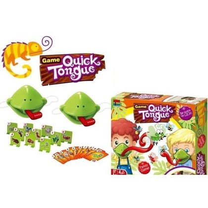 Przygotuj się na salwy śmiechu z grą Quick Tongue, dynamiczną i zabawną grą zręcznościową, w której wcielasz się w kameleona! Dwóch graczy zakłada specjalne maski z ruchomymi "językami", a następnie czeka na rozsypanie kart z wizerunkami owadów. Zadaniem jest jak najszybsze "strzelenie" językiem w odpowiednie karty celu, zanim zrobi to przeciwnik. Wygrywa ten, kto zbierze więcej kart. Quick Tongue to świetny sposób na rozwijanie szybkości reakcji, koncentracji i koordynacji ręka-oko u dzieci. Proste zasady sprawiają, że gra jest idealna dla najmłodszych od 4 roku życia, ale dostarcza rozrywki również dorosłym. Opakowanie zawiera wszystkie elementy potrzebne do rozpoczęcia zabawy: dwie maski kameleona z językami, zestaw kart celów przedstawiających owady oraz talia kart do gry. Zapewnij swojej rodzinie niezapomniane, pełne śmiechu chwile z Quick Tongue!