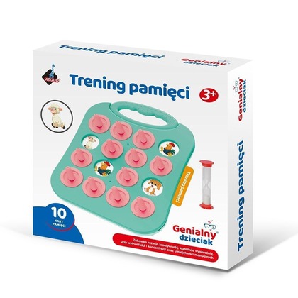 W zestawie plansza, 16 zaślepek, 10 dwustronnych plansz, klepsydra Trening pamięci stanowi ważny element stymulujący rozwój dziecka.