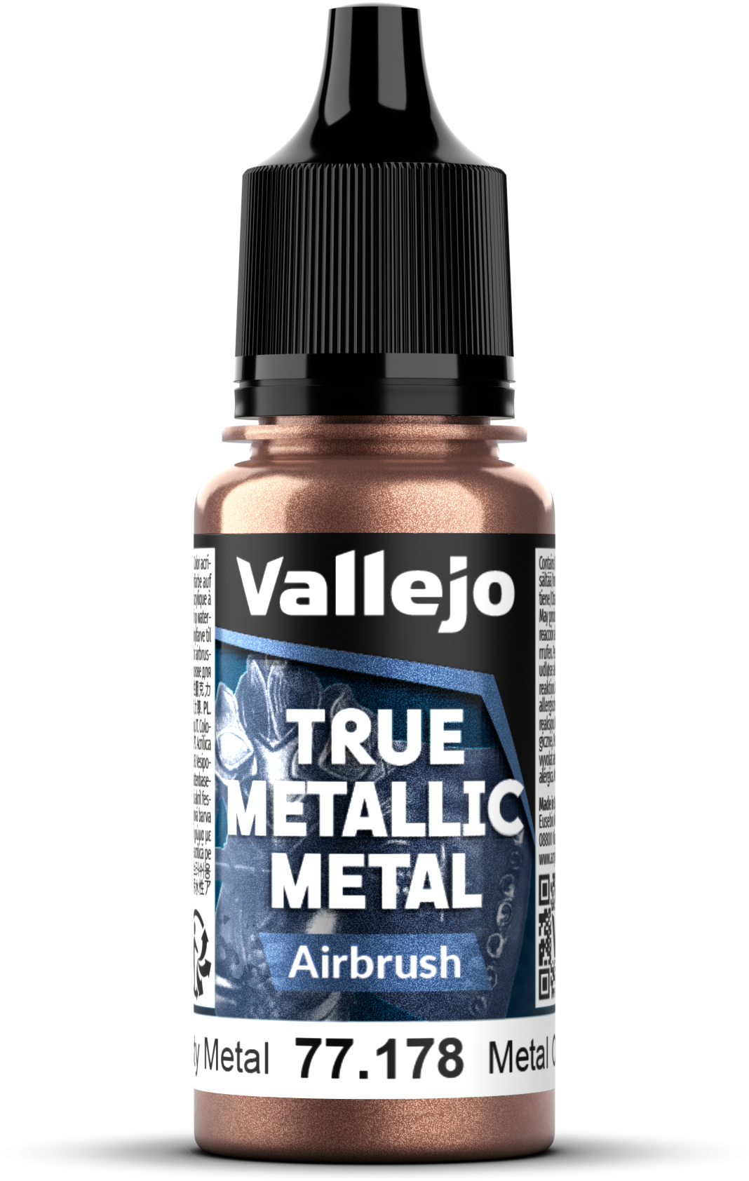 True Metallic Metal to farby z prawdziwymi metalicznymi pigmentami, które pozwalają oddać realistyczny efekt metalicznych powierzchni. Produkty z tej serii pozwalają na uzyskanie naturalnych odbić światła i spektakularnych efektów wizualnych, zachowując przy tym autentyczną "metaliczność" materiału w miniaturowej skali.   Produkty z serii True Metallic Metal Airbrush zostały stworzone specjalnie do pracy z aerografem, ich kolory zostały chromatycznie dopasowane do analogicznych odcieni bazowych. Farby te oferują jednorodne wykończenie i intensywne nasycenie barw. Są gotowe do użycia prosto z butelki, ale można też je rozcieńczać przy pomocy Airbrush Thinnera, by uzyskać delikatniejsze efekty (jednak zbyt mocne rozcieńczenie może wpływać na dokładność i równomierność krycia!).   Kolory True Metallic Metal można ze sobą mieszać, tworząc własne, wyjątkowe odcienie.