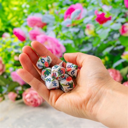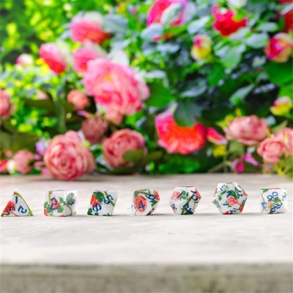Wprowadź subtelne piękno natury na swój stół do gry dzięki zestawowi kości Full Art: Róże. Te wyjątkowe kości, inspirowane delikatnymi kwiatamii w odcieniach różu i zieleni, zachwycą każdego gracza swoim pełnokolorowym nadrukiem i harmonijnym wzorem. Elegancja i funkcjonalność łączą się tutaj, tworząc idealne akcesorium dla miłośników sztuki i gier.   Dlaczego warto? Wyjątkowy design biały podkład i wzorzyste róże w odcieniach różu i zieleni tworzą harmonijny i artystyczny zestaw. Pełnokolorowy nadruk wzór na każdej ściance został starannie zaprojektowany, aby wyglądać elegancko. Czytelne cyfry runiczne wyraźne oznaczenia umożliwiają szybkie odczytanie wyniku. Harmonia i styl idealny wybór dla graczy, którzy cenią piękno i dokładność.