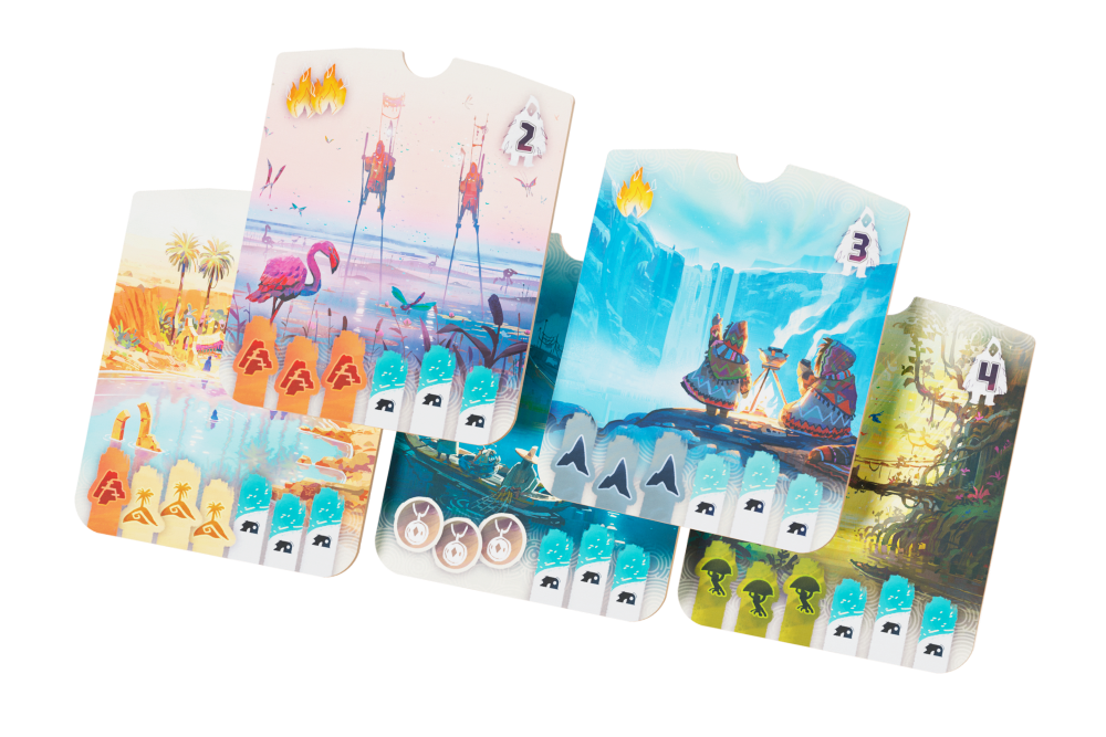 Wstaje nowy dzień, a nasze zasoby maleją. Zdecydowaliśmy się zwinąć obóz i wyruszyć w nieznane w poszukiwaniu lepszego jutra. Czy to w zakolu rzeki, czy w sercu gór wszędzie będziemy szukać brakujących nam surowców. Przemierzając lasy i pustynie, będziemy strzec drogocennego ognia, który daje nam ciepło i oświetla drogę. Nie ustąpimy w obliczu rosnącego nacisku ze strony sąsiednich plemion napiszemy swoją historię za wszelką cenę. Dewan to dynamiczna, rywalizacyjna gra strategiczna łącząca rozmieszczanie obiektów z zarządzaniem ręką oraz elementami wyścigu. Podczas rozgrywek decydujemy, które karty terenów chcemy wziąć na rękę, a następnie wykorzystujemy je, by umieszczać swoje obozy w kluczowych regionach, zanim zrobią to przeciwnicy. Aby wygrać, musimy sprytnie wykorzystywać ukształtowanie terenu i realizować cele, a zbieranie jagód i opanowanie sztuki ognia zapewni nam dodatkowe punkty zwycięstwa. Na czym to polega? W każdej rundzie gracze rozgrywają po 1 turze. W ramach tury mogą wziąć 2 karty albo umieścić obóz. Każda karta terenu jest podzielona na 2 części reprezentujące konkretne tereny (mogą być identyczne) i umożliwia przemieszczanie się po odpowiadających im obszarach. Oprócz tego karty mogą też mieć specjalne symbole. Jeśli zdecydujemy się na dobieranie, bierzemy 2 odkryte karty sąsiadujące ze sobą w specjalnym rzędzie. Drugim rodzajem akcji jest umieszczenie obozu. W tym celu wybieramy 1 z naszych obozów na planszy oraz dowolne puste pole, które będzie naszym polem docelowym. Następnie wskazujemy pola, które chcemy minąć, by dotrzeć do pola docelowego. Za każde z nich musimy zapłacić odpowiednią kartą terenu. Strategiczne rozmieszczanie obozów na planszy ma znaczenie w kontekście realizowania celów. Głównym źródłem punktów w grze są kafelki historii, z których każdy ma określone wymagania dotyczące m.in. tego, z jakimi strefami i symbolami sąsiadują nasze obozy. Każdy ma własny zestaw celów, które próbuje zrealizować jeden dobieramy na początku gry, a kolejne zdobywamy w jej trakcie. Gra kończy się, gdy któryś z graczy umieści ostatni obóz ze swoich zasobów. Po dograniu rundy do końca podliczamy punkty za zrealizowane kafelki historii i zebrane symbole, a ten, kto zgromadził ich najwięcej, zostaje zwycięzcą. Dlaczego pokochasz tę grę? To świetna propozycja dla fanów abstrakcyjnych gier strategicznych, którzy lubią planowanie przestrzenne. Naszym celem jest jak najefektywniejsze rozmieszczanie obozów na planszy, by zrealizować indywidualne cele. Pozostali gracze mogą nam podbierać zarówno kafelki historii jak i zająć przed nami upatrzone miejsce, ale nie ma tu bezpośredniej negatywnej interakcji. Losowo przydzielane kafelki startowe oraz układ planszy tworzony na nowo w każdej rozgrywce w połączeniu z oczywistą różnorodnością kart i kafelków gwarantują, że każda partia będzie zupełnie nowym wyzwaniem. Poza standardową rozgrywką gra oferuje wariant drużynowy 2 na 2 oraz tematyczne scenariusze: Wulkan, Ulewę i Wioski na jeziorach!