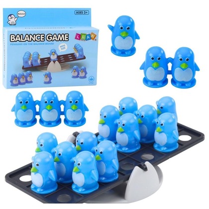 Gra zręcznościowa Balansujące Pingwinki to edukacyjna zabawka stworzona z myślą o dzieciach, które poprzez zabawę rozwijają logiczne myślenie, koncentrację oraz zdolności manualne. Zadaniem dziecka jest układanie figurek pingwinków po obu stronach balansującej podstawy w taki sposób, aby zachować równowagę całej konstrukcji. Każdy kolejny ruch wymaga obserwacji, planowania i przewidywania, co pozytywnie wpływa na rozwój umiejętności poznawczych oraz cierpliwości.
