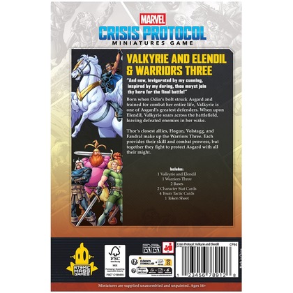 Wejdź do świata Asgardu i wzmocnij swoje drużyny dzięki Valkyrie and Elendil & Warriors Three - Character Pack! Ten zestaw wprowadza dwie wyjątkowe postacie do Marvel: Crisis Protocol, które dodadzą Twojej drużynie siłę ofensywną i taktyczną wszechstronność.   Ten zestaw jest idealnym uzupełnieniem dla graczy posiadających Loki, Thor, Mighty Thor & Lady Sif (CP91) lub Asgardian Affiliation Pack (CP198). Wzbogacaj swoje drużyny o potężne postacie gotowe na epickie starcia!