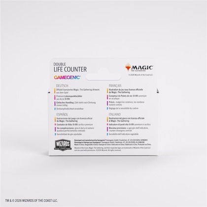 Gamegenic: Double Life Counter to precyzyjny licznik życia wykonany z akrylu, ozdobiony motywem z gry Magic the Gathering.   Jego wartości mieszczą się w zakresie 0-99, więc z powodzeniem może być używany w dowolnych grach planszowych i karciankach. Możesz wykorzystać go jako standardowy licznik życia lub jako punkty zwycięstwa.