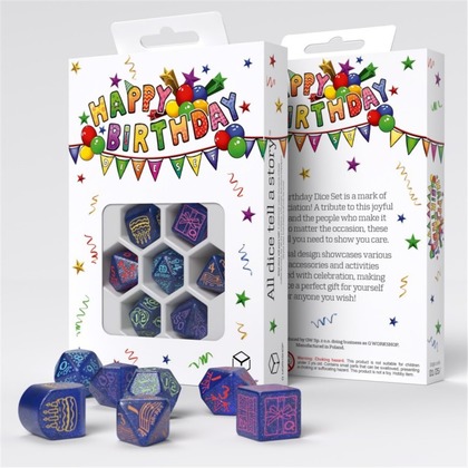 Dodaj odrobinę radości do swojej gry dzięki Urodzinowemu zestawowi kości!   Stworzony z myślą o świętowaniu wprowadza atmosferę zabawy i magii do każdej rozgrywki. Zestaw zawiera 7 kości ozdobionych kolorowymi serpentynami, balonami i motywami urodzinowymi, idealnie odwzorowującymi radość tego dnia, a pastelowe kolory w połączeniu z subtelnym brokatem tworzą wyjątkowy efekt! To świetny pomysł na prezent dla fanów RPG i gier planszowych, którzy uwielbiają połączenie zabawy z pięknymi przedmiotami kolekcjonerskimi!