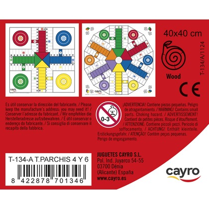 Drewniana plansza do gry + komplet pionków (Chińczyk dla 4 i 6 graczy 40x40 cm) (T-134A)