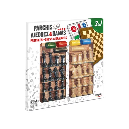 Drewniana plansza do gry + komplet figur i pionków (Szachy / Warcaby / Chińczyk 40x40 cm) (100)