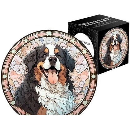 Odkryj magię układania dzięki naszym okrągłym puzzlom z motywem uroczego Berneńskiego Psa Pasterskiego. Ten 168-elementowy zestaw prezentuje wizerunek psa w zachwycającym, artystycznym stylu witrażu, pełnym pastelowych barw i eleganckich, kwiatowych wzorów otaczających główny motyw. To nie tylko wyzwanie intelektualne, ale także piękny przedmiot dekoracyjny, który po ukończeniu może stać się oryginalną ozdobą każdego wnętrza. Puzzle te są idealnym prezentem dla każdego entuzjasty puzzli i fana tej majestatycznej rasy psów, oferując szybką i satysfakcjonującą zabawę. Solidne wykonanie i precyzyjne cięcie elementów gwarantują satysfakcję z układania. Zapewnij sobie godziny relaksującej i twórczej zabawy.