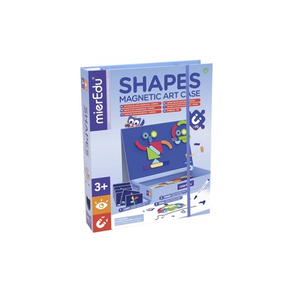 Po otwarciu to niezwykłe pudełko zamienia się w magnetyczną, zmywalną tablicę, na której dzieci mogą układać kolorowe kształty, rysować i pisać, tworząc własne obrazy i wzory.