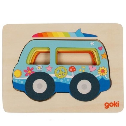 Drewniane puzzle składające się z 5 warstw, ukazujących pięć różnych samochodów w różnych kolorach oraz wielkościach, od najmniejszego do największego. Rozwijają logiczne myślenie, koordynację ręka-oko oraz zainteresowanie motoryzacją. Każda warstwa zaskakuje nowymi detalami, zachęcając do eksploracji.