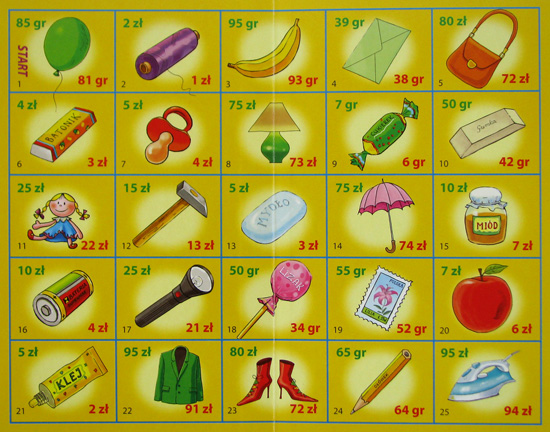 W trakcie gry, pionki graczy przemieszczają się po planszy. W zależności od ich położenia, gracze kupują towary, których obrazki wraz z ceną umieszczone są na każdym polu planszy. Gracze w swojej kolejce odliczają z kasy właściwą ilość pieniędzy, kupują towar, a sprzedający musi poprawnie obliczyć i wydać resztę.